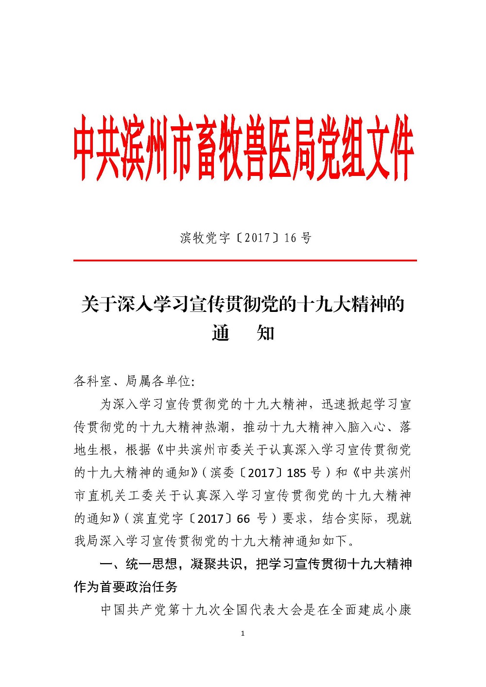 滨牧党字〔2017〕16号 关于深入学习宣传贯彻党的十九大精神的通知